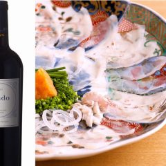 江戸期古伊万里の器に飾られた、当店の ふぐさし。